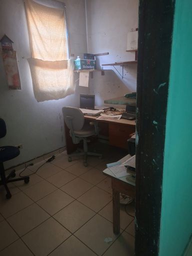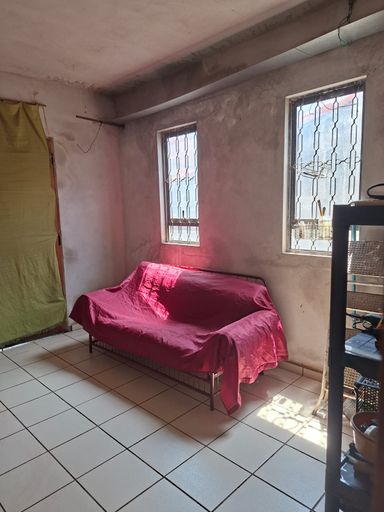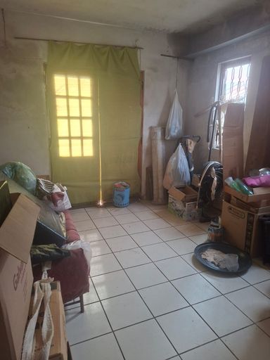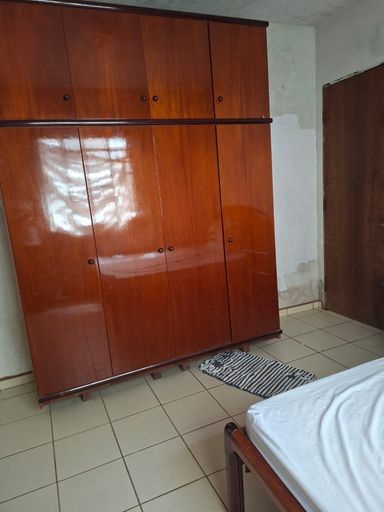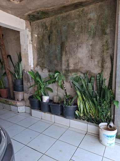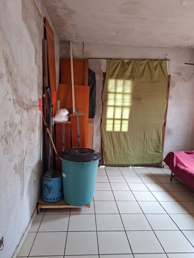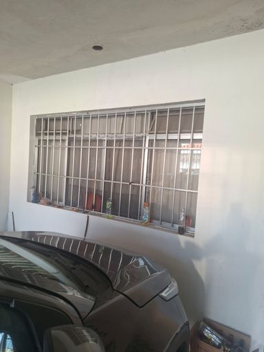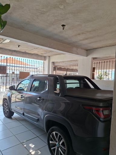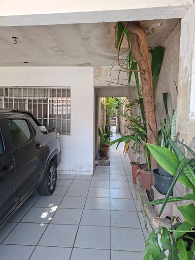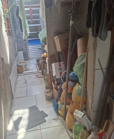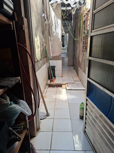 Garagem coberta para 1 carro , no fundo quintal pequeno.