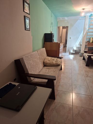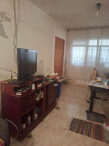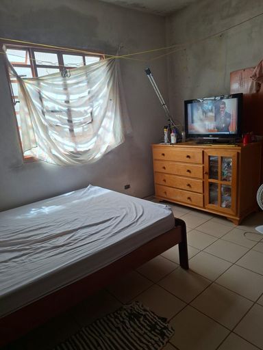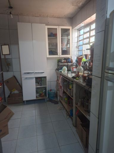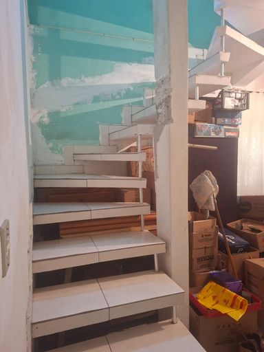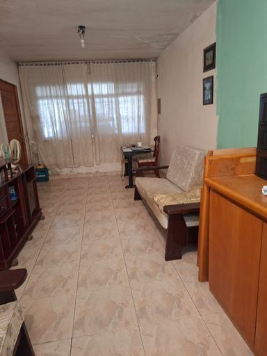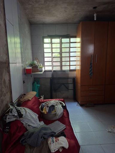 Parte inferior, sala grande, 1 banheiro, 1 quartos, copa e cozinha, lavanderia com tanque, máquina.